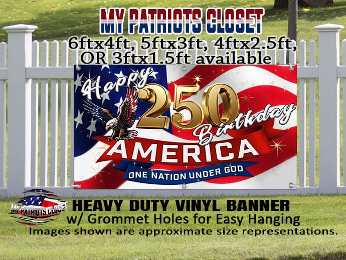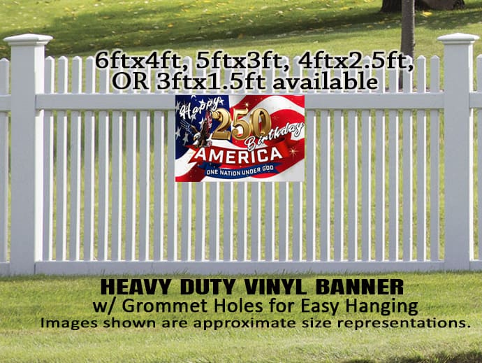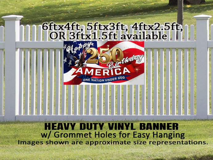 Happy 250 Birthday America, ONE NATION UNDER GOD Banner